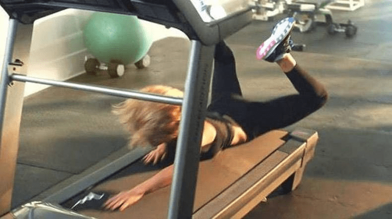 A treadmill is one of the basic machinery you will encounter at most gyms. This is because it allows you to burn calories without lifting heavy weights. The best thing is that the speed of this machine is adjustable to suit your pace. Beginners are advised to use a slow speed and increase it gradually. This is because falling accidents are common if you cannot keep up with the treadmill’s pace. The woman in this picture may be a beginner, or she may have underestimated the speed. She must have been hurt greatly by the fall seen in this image.